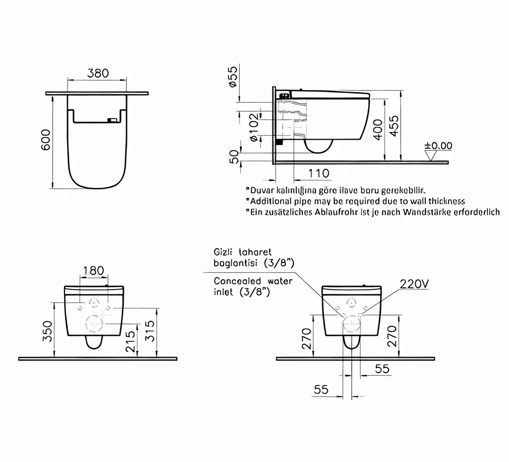 Stap over naar luxe met V-Care Comfort, dat extra functies biedt zoals deinstelbare watertemperatuur en droogopties. Het slanke ontwerp integreert moeiteloos in premium badkamers.